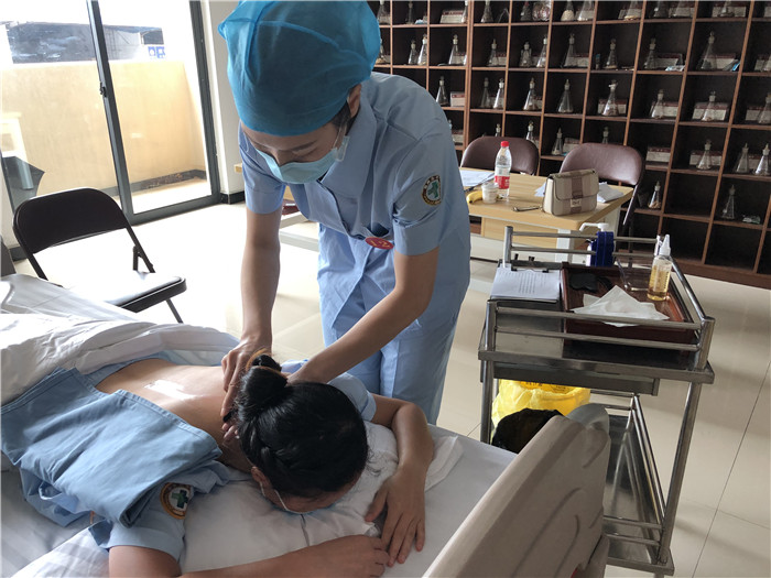 第二部分为选手完成评估、辨证后,涉及的操作技术为耳穴贴压技术、拔罐技术、刮痧技术、经穴推拿技术抽取其中一项进行操作考核,并能说出施术思路;