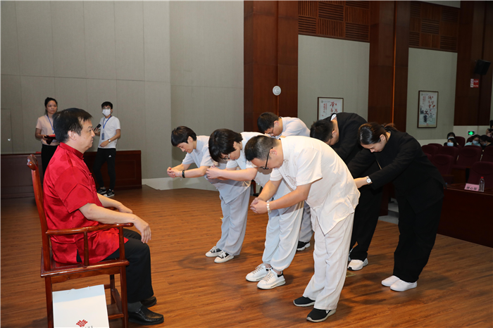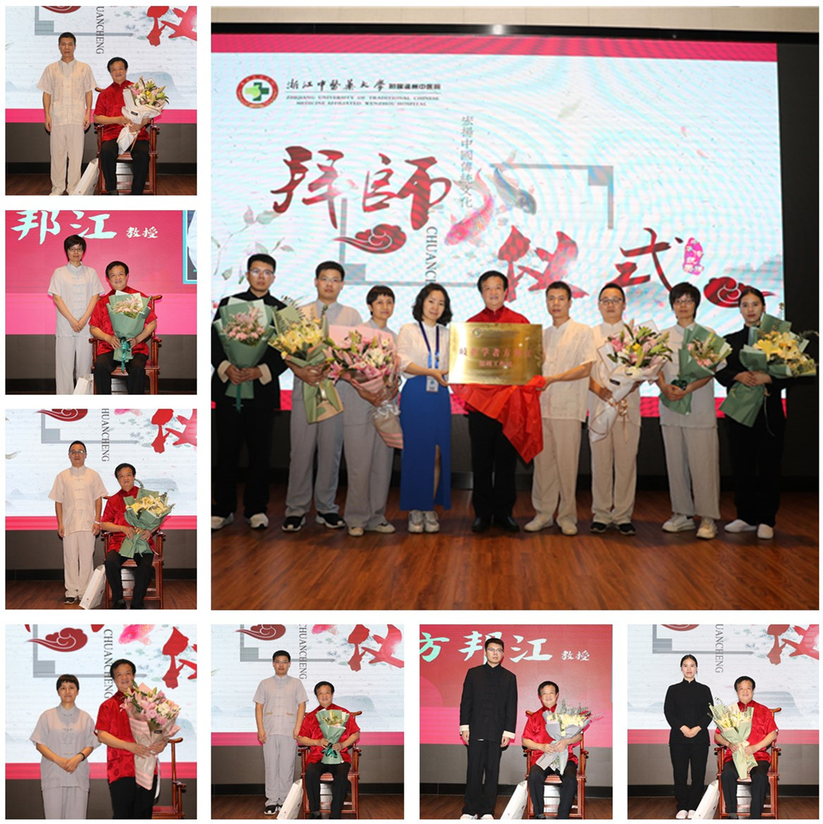 揭牌仪式后,现场举行了中医传统传承的拜师仪式,温州市中医院副院长、主任医师缪心军领衔支英豪主任中医师、张济周副主任中医师、刘晓副主任医师、周荣副主任中医师、方鹏医师、王杨淑怡医师拜方邦江教授为师,将开展学习传承工作。