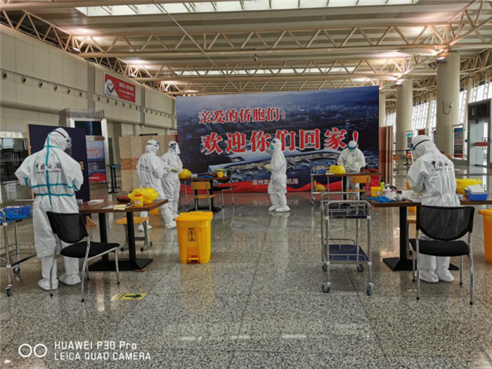 (时间:2020年7月2日 地点:温州市龙湾机场 人物:温州市中医院机场抗疫小分队 事件:疫情防控期间为境外航班进行核酸抗体检测)