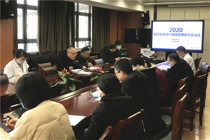 12月30日下午,温州市中医院2020年第四季度医疗仪器管理委员会暨医疗器械临床使用安全管理委员会会议在六虹桥院区召开,副院长麻瑞龙、陈炳及全体管理委员会委员参加会议。会议由设备科科长徐晓峰、物资采购中心主任陈力共同主持。