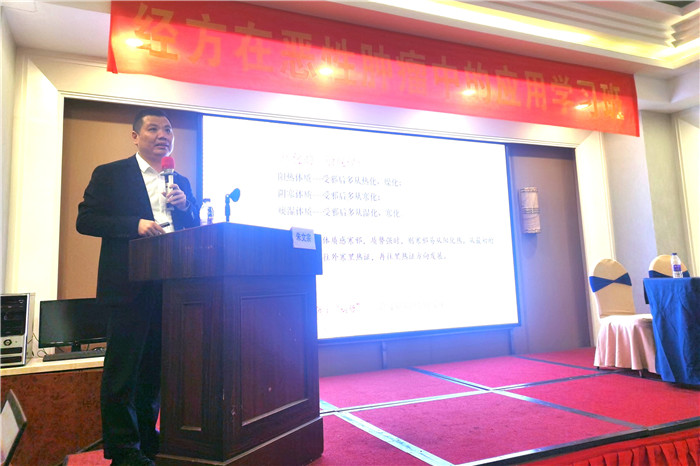 温州医科大学附属第一医院中医科主任中医师、副教授、中医内科博士、硕士生导师袁拯忠教授为我们介绍了传统理论“上下交损,当治其中”的理论源流及应用并提出了自己的独到见解:“当治其中”不仅仅局限于中焦脾胃,少阳肝胆亦不可忽略。袁教授将该理论运用到恶性肿瘤的临床诊治中去,用一个个医案告诉我们“扶正以补中为先”“怯邪以伤脾为禁”“调摄以碍胃为忌”。最后他呼吁在场的学员继承和发扬传统医学,在前人成就的基础上继续钻研,争取获得更好的成绩。