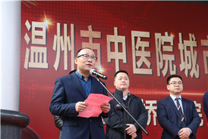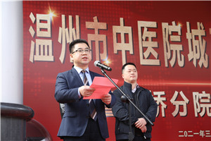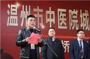 仪式上,瓯海区中西医结合医院支部书记周剑晃发表讲话,他表示,瓯海区中西医结合医院承担着瓯海西片人民群众的预防保健、医疗康复、急诊急救的重任,此次合作必将推进医疗管理服务全面发展,推动医院工作上新台阶,不仅优化医疗资源互补,也打通医院之间的就诊通道,有效缓解看病难局面,让成效惠及当地人民群众,使他们就近享受到高水平的医疗服务。