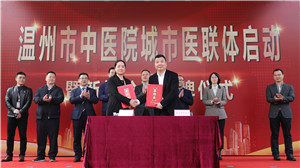 温州市中医院院长朱文宗和瓯海区中西医结合医院院长谢爱共同签署城市医联体协议。