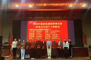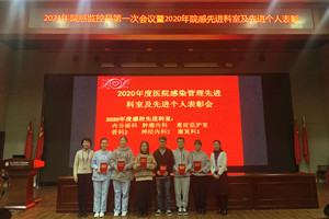 最后,感染管理科科长徐玉燕为荣获2020年度感控先进科室、先进个人颁奖并合影。她要求先进科室、先进监控员再接再励发挥榜样作用,未获奖科室与人员新年再加油。