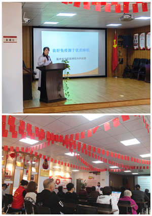 温州市中医院神经内科1赵娜副主任中医师为社区群众带来了一场睡眠讲座《养生有道 睡眠有法》,她从失眠的诊断标准出发,纠正群众对睡眠的认识误区,以及指导如何正确睡眠,做到睡眠养生。讲座深入浅出,现场气氛活跃,有效提高了群众对健康睡眠的认识与重视。
