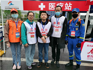 为确保比赛顺利进行和参赛运动员发生意外时能得到及时、有效的救治,我院积极响应市卫健委的要求,医务科组织医务人员来到现场,在比赛沿线运动员休息区组建救助站,参与赛中的应急医疗处置工作,为此次马拉松赛护航。