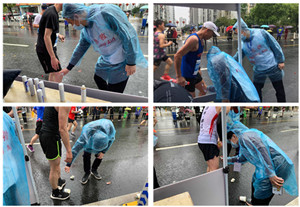 4月11日凌晨5点30分,我院医疗队冒雨抵达赛场,着手准备医疗救治工作。部分参赛者经过我院医疗点时出现了肌肉酸痛、抽筋、眩晕、乏力、呼吸不畅等症状,医疗队员们立即投入到紧张的医疗救治工作当中。