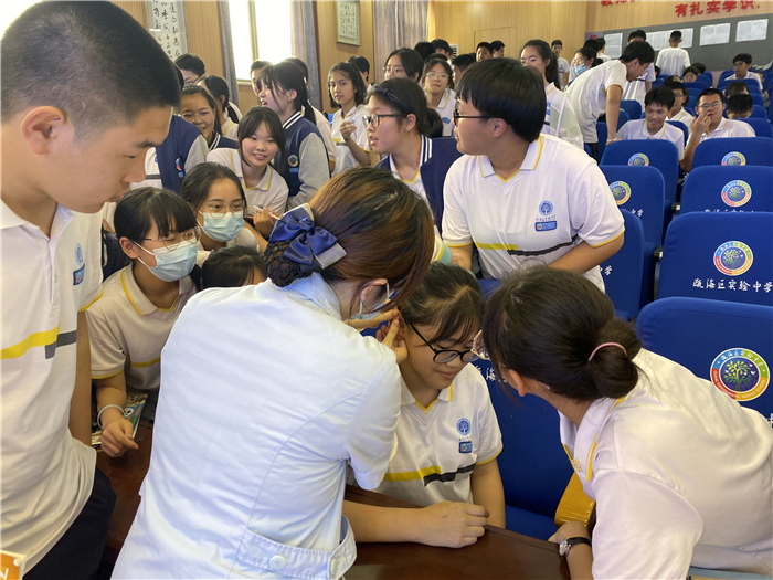 岐黄进校园,携手护健康,风华正青春,妙手亦传承。5月11日下午,温州市中医院普安科普团队还走进校园,给瓯海实验中学带去了科普讲课与现场义诊。团队为同学们讲解了眼科专科知识和如何预防近视,并给他们做了耳穴贴压,还在现场带领同学们打了八段锦,培养学生们的中医文化兴趣。