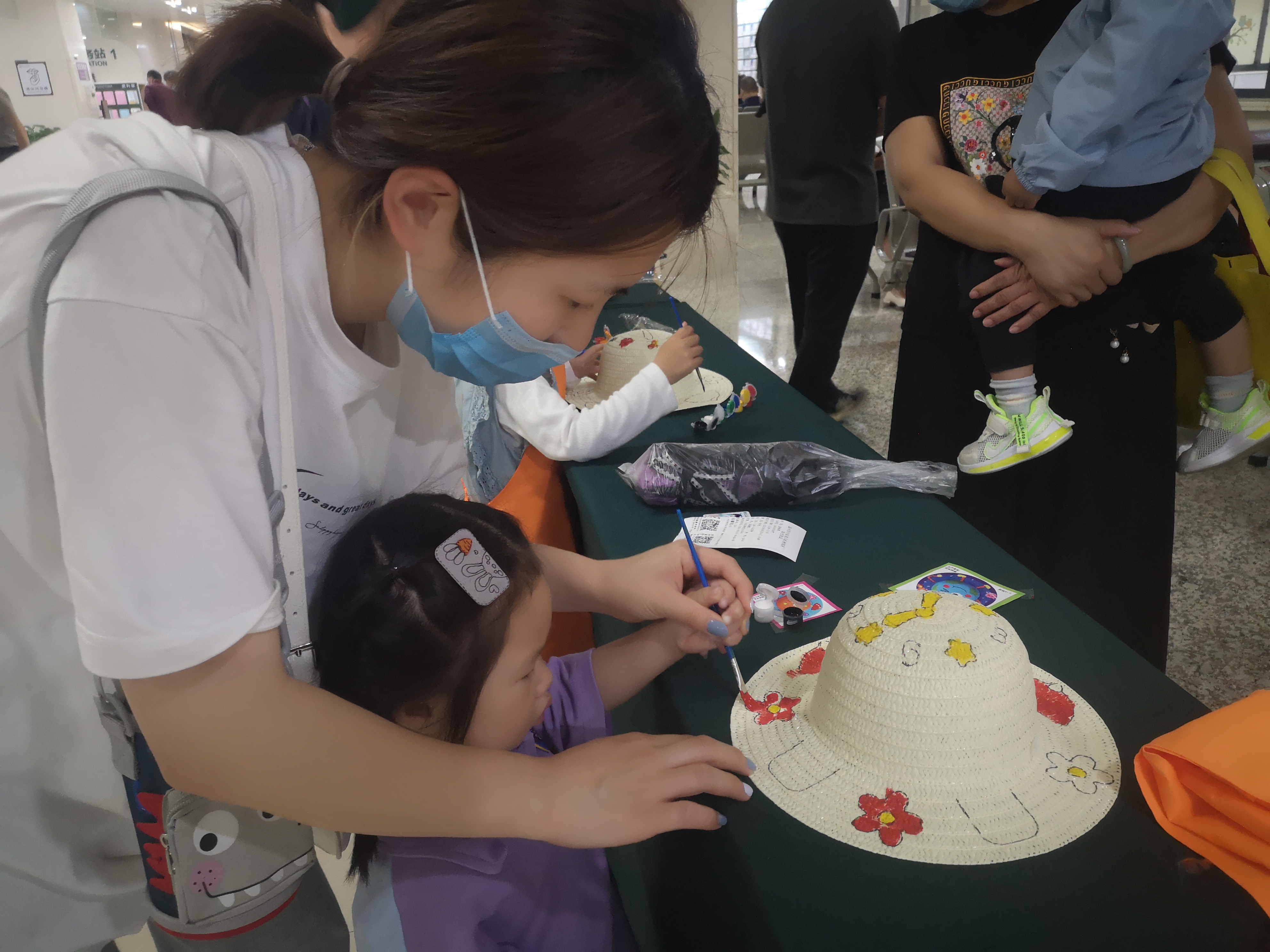 每一位来院的小朋友都可以穿上特制的围裙,用稚嫩的双手和五彩的画笔,在原本无色暗淡无光的帽子上一笔一划勾勒出自己心中的色彩。现场有温馨亲子共同参与绘画的,有独立展现绘画天赋的小朋友,还有踩着木凳也要参与的小小朋友。带上亲自做好的帽子,小朋友们开开心心的互相分享,除了自己的作品和围裙,他们还都获得了一份香囊小礼品!