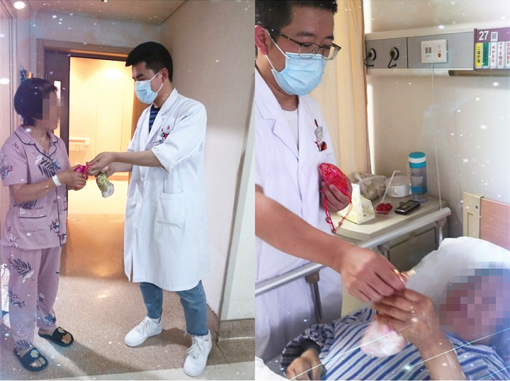 下午2点,在护士长的带领下,一个个漂亮的香囊送到病人手上,细心讲解着香囊的意义(香囊中所用的中草药物,能散发出天然的香气,这种香气属中药学理论中的五臭范畴,具有开窍醒神、化湿醒脾等功效,且对防蚊驱虫有一定作用),并向病人表达最真诚的祝福:端午节快乐。
