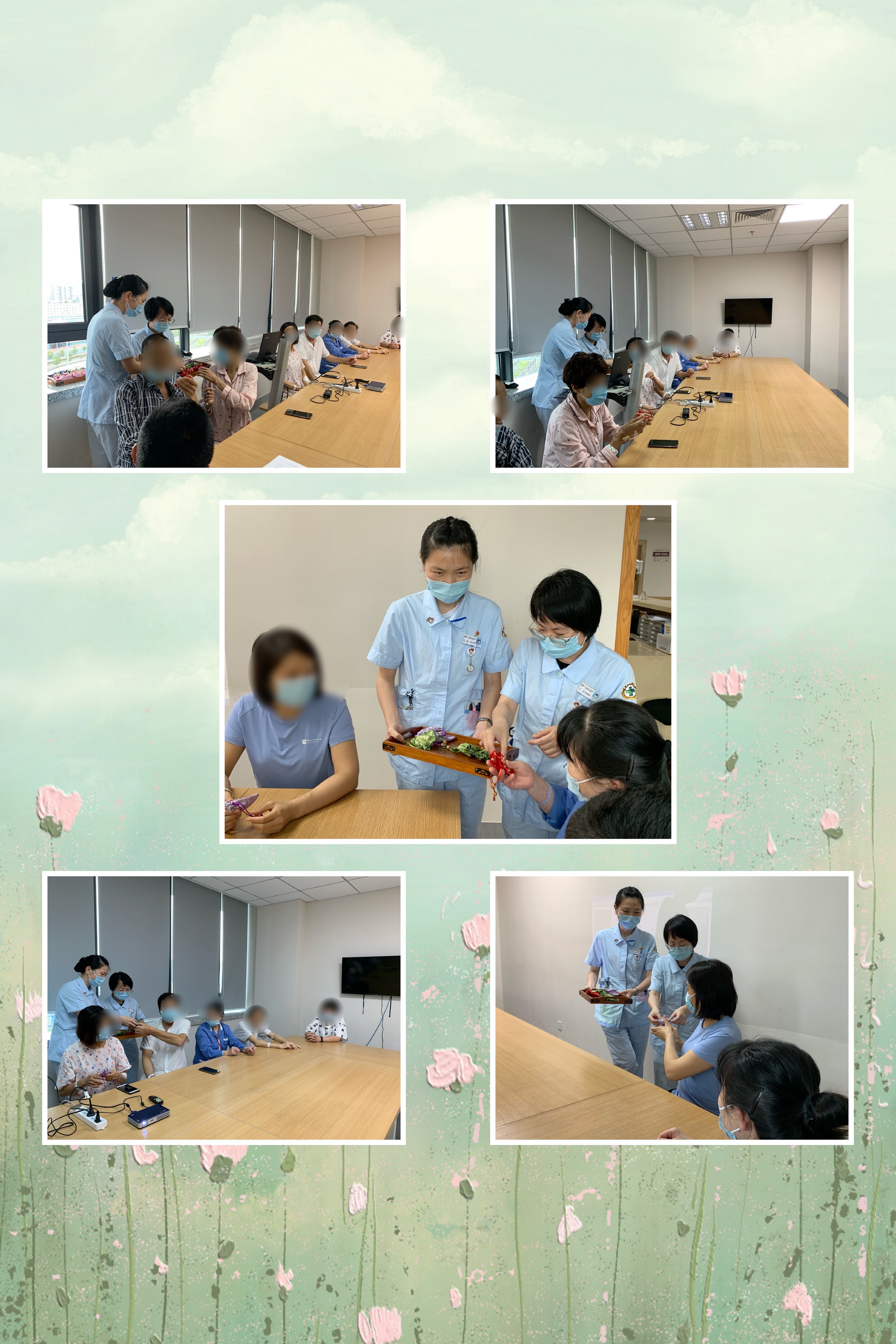 近日疫情形势严峻,翁丹茜护士向患者介绍了七步洗手法并示范,勤洗手是最有效的防疫措施之一。苏林红副主任医师向大家讲解了毒五月的气候特点及如何应对。农历五月常常包含夏至。也就是说,一年中最热的时候就是这个阶段了。高温导致人体水分散失,形成了中医理论中的“津液亏虚”。如果不在这个时候做针对性的预防,就容易使气血运行瘀滞,这就是为什么夏天脑梗、心梗多发的原因。