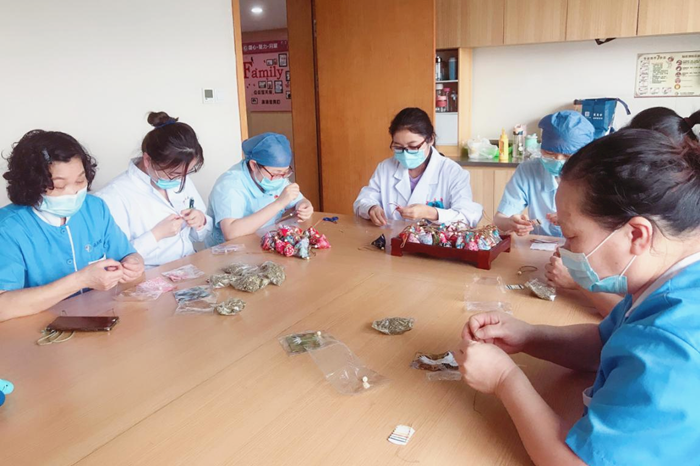 又是一年端午节,对于普通人而言,与家人一起吃粽子,赏龙舟,是一件简单的事情,但对于肿瘤科的患者来说却是一种奢望。为了弥补患者不能与家人团聚过端午节的遗憾,6月14日,温州市中医院肿瘤内科的全体医护人员特意为住院患者准备他们亲手制作的香囊。一枚小小的香囊包含了肿瘤内科医护人员对患者的美好祝愿,体现了浓浓的医患情。