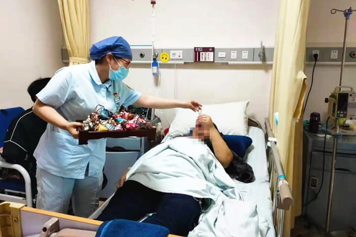 作为医护人员,每次给病患送爱心时,看到患者拉着自己的手表达感谢,讲述病情好转的时候,心中充满了欣慰和无与伦比的满足感。患者佩戴着精美的香囊,表达着感谢之情,感动无处不在。