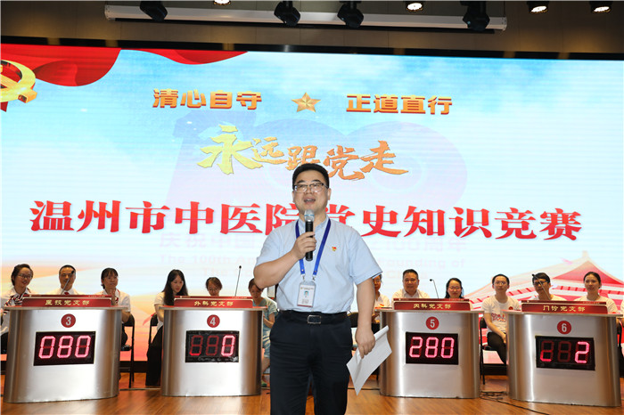 为庆祝中国共产党成立100周年,深入推进党史学习教育,积极营造更加深厚的学习宣传氛围,进一步激发党员干部、入党积极分子爱党爱国热情,坚定共产主义理想信念,6月23日下午,温州市中医院举办了一场“清心自守、正道直行——永远跟党走”党史知识竞赛。