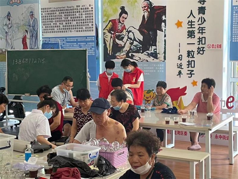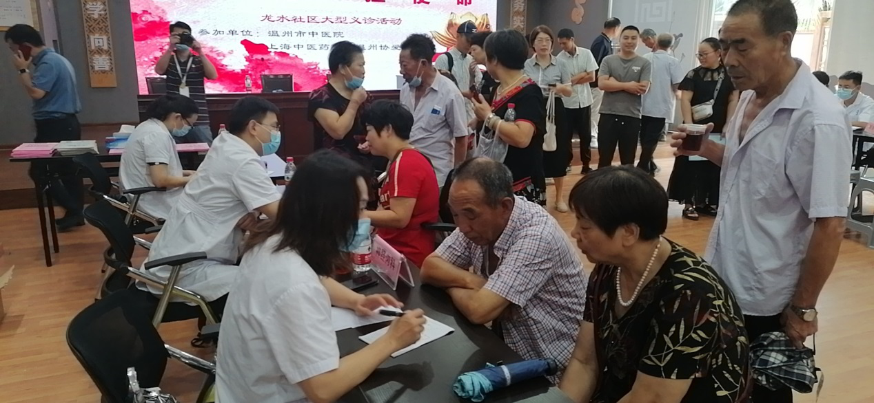 为庆祝中国共产党成立100周年,深入推动党史学习教育“我为群众办实事”,2021年7月17日,温州市中医院农工党总支在市政协委员金霄主委的带领下,于龙湾龙水社区开展义诊活动,利用自身专业优势,把医疗健康服务送到老百姓的家门口。