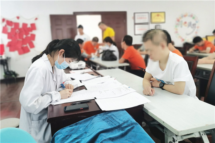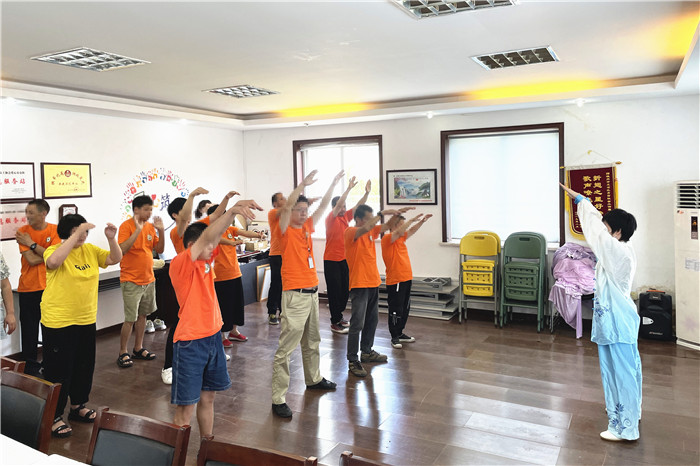 康复治疗师夏小云为有肢体功能障碍的学员们进行康复评估和康复指导。