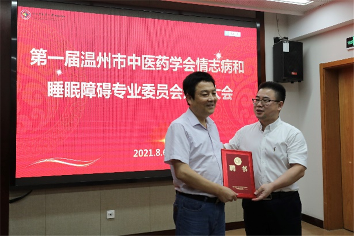 会上选举产生浙江省名中医张永华教授为情志病和睡眠障碍专业委员会名誉主席,温州市第七人民医院党委书记林小东、温州市中医院院长朱文宗、浙江省名中医胡万华为名誉顾问,选举产生温州市中医院神经内科陈凌主任中医师为专委员会第一届主任委员,浙江省名中医叶人教授、温州市名中医杨军主任、温州市中西医结合医院赵元琛主任中医师、温州市中医院陈克龙副主任中医师、支海鸯副主任中医师五位医生为副主委,陈瑶偏、戴海东、付广月等23位医生为委员。王庆来书记为名誉主席、名誉顾问、主委、副主委等颁发证书。