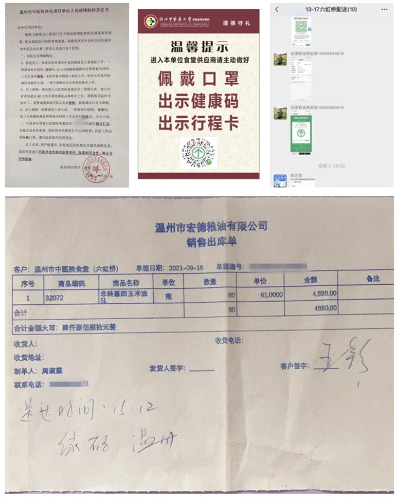 所有食堂供应商签订了疫情防控责任书,收集供应商送货人员信息进行登记造册并固定送货人员,送货人员每周进行核酸检测,每次送货前一天要求送货人员提供7天内核酸检测结果,送货时出示健康码、行程码并直接登记在送货单上。