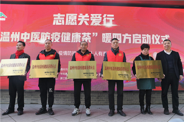 1月11日下午,志愿关爱行“温州中医防疫健康茶”暖四方启动仪式在红日亭举行,将在温州10个伏茶点(摊)“端出”由温州中医名医团队研发的免费“温州中医防疫健康茶”,汇聚多方志愿力量,为百姓增加一道疫情防控的中医屏障。