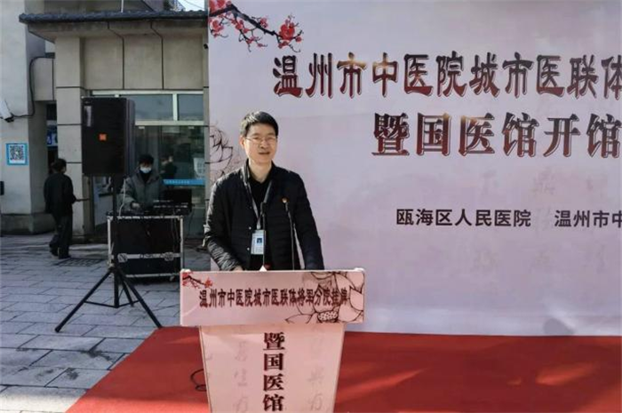 ▲温州市瓯海区卫健局党委书记张益品在仪式上致辞