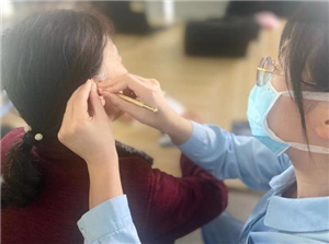 护士为有睡眠障碍的患者进行耳穴埋豆、穴位贴敷、活血安神足浴等治疗。