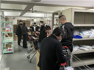 3月3日中午,为保障抗疫支援工作的顺利进行,在科室两位主任的带领下,物资采购中心全体人员放弃午休时间,大家在物资仓库将一箱箱物资成套整理。大家分工明确、默契有序,在最短的时间内将备用抗疫物资全部打包完毕,为外出采集人员的有效防护提供了强有力的保障。