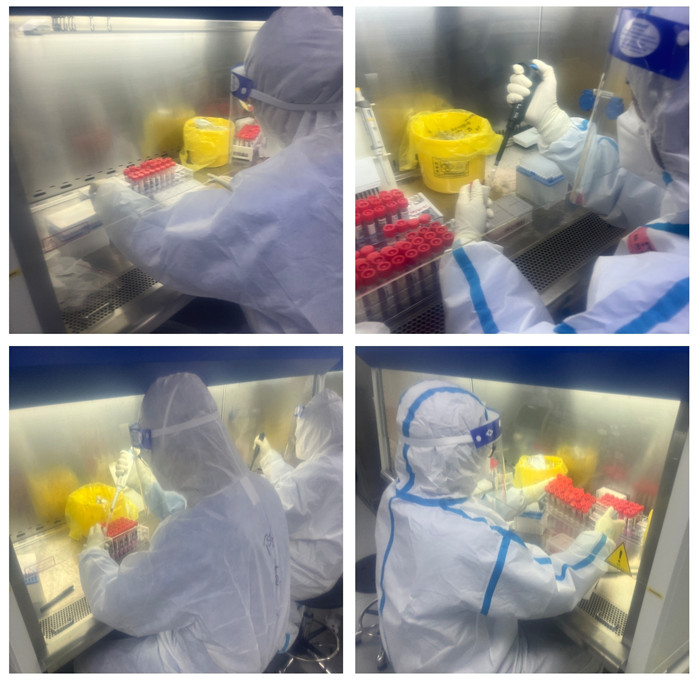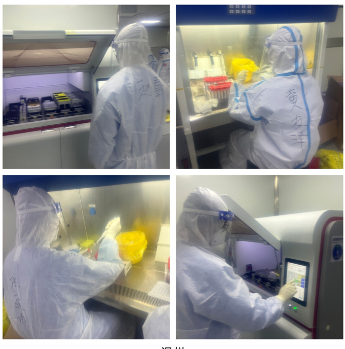 在核酸检测基地,大家积极配合组织分配,标本拆袋、标本排序标号、试剂配制、标本前处理、标本加样、上机核酸提取、试剂模板加载、新冠核酸扩增等各个环节事无巨细,把日常工作中的娴熟、谨慎、灵活、机智带到了那里,顶着巨大的压力及时而准确地完成了核酸筛查工作。