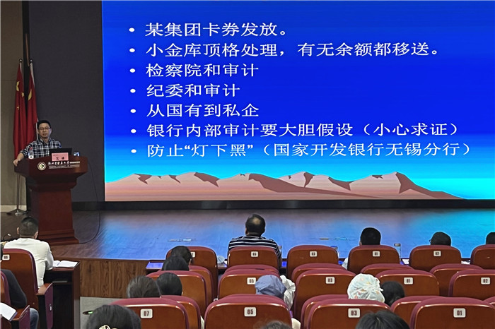 会上,市审计局沈谦处长进行了《加强内部审计 防范职务风险》的主题授课。详细介绍了我市内部审计状况以及十九大后的审计新变化,通过借喻人体的三道防线帮助大家理解内部审计工作在单位组织中发挥的作用。同时,他用生动诙谐的语言向大家讲述了以往审计检查工作中碰到的实际案例,强调了事前合规工作的重要性,为医院后续的监督管理启发了思路。