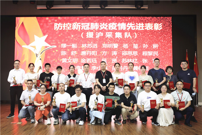 会上对援沪医疗队、援沪采集队及援沪中医医疗队共37人进行表彰,王庆来书记和朱文宗院长为受表彰人员颁发荣誉证书及纪念奖杯。