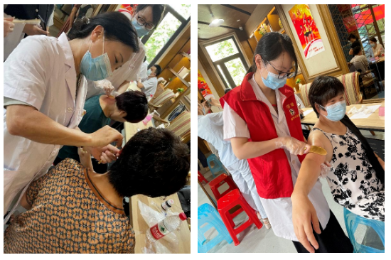 7月10日,温州市中医院内科第一党支部联合新桥未来社区在中央湖小区开展“红七月·服务月”专家下沉健康义诊活动,以实际行动服务社会,助力“党群连心、共富助跑”。