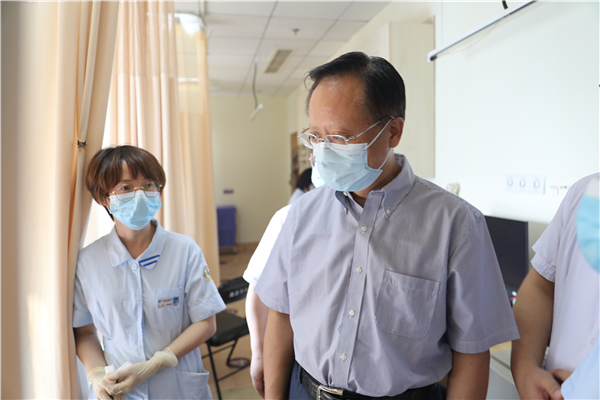 最后,一行人来到党建书苑,了解到医院职工可以在如此明亮、安静、舒适的氛围里休息并提高自我,他表示:“要打造让患者满意和幸福的医院,首先是要让我们的医生幸福和满意,这个做法很好。”