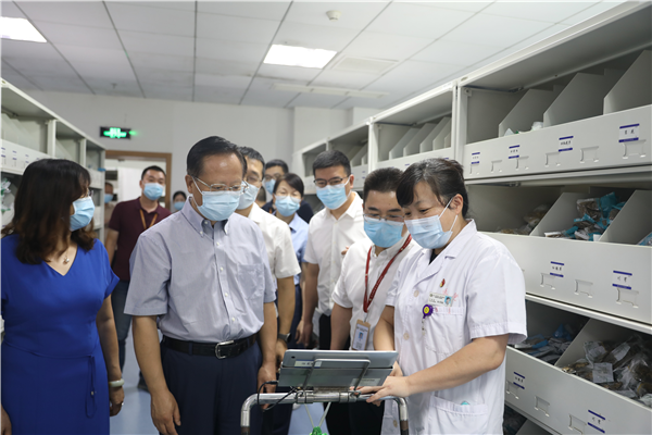 智能绿色无纸化中药房同样得到了秦怀金的充分肯定。他认真听取了中药房从医生开单到配药全流程的介绍,对患者等候取药时间平均缩短至半小时左右表示满意。