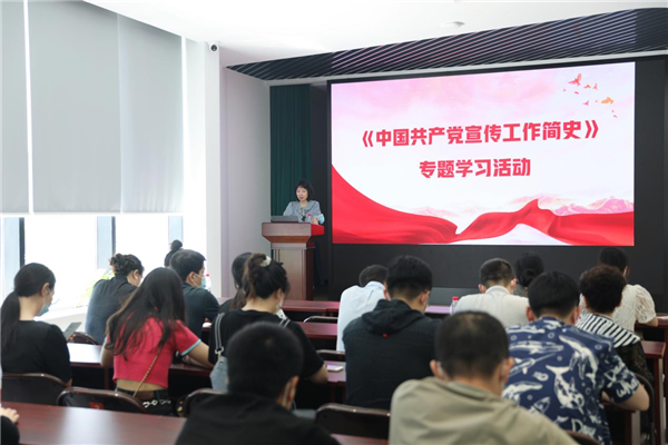 随后,张伊凡带领大家在纪念馆二楼会议室召开了专题学习会。会上,集体学习了《中国共产党宣传工作简史》。一百年来党的宣传工作服务党和人民事业发展的伟大历程和重大成就,充分反映了党中央领导宣传工作取得的历史性成就和发生的历史性变革,翔实记述党的宣传史上重要思想、重要方针、重要事件、重要活动,集中彰显了伟大建党精神和我们党独特的思想政治优势。